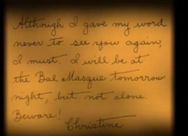 Christine leaves, but the Phantom’s warning did not deter her from writing to Raoul.