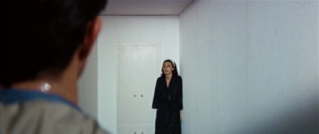 The most startling and lingering image in this whole scene is that of Mrs. Robinson waiting outside of Elaine’s door, weak and tired, with circles under her eyes. It is a completely different Mrs. Robinson than the confident and self-assured woman we see in the rest of the movie. From Anne Bancroft’s magnificent performance in this scene, we can perhaps deduce that Mrs. Robinson’s threat to Benjamin was an empty one–that, as Benjamin originally thought, she would not have told Elaine about their relationship herself. She appears close to tears as she says goodbye to Benjamin. The camera zooms quickly out, and Mrs. Robinson is frozen still against the white backdrop. She appears almost like a ghostly vision, and it is interesting to note that she is not looking at Benjamin–her eyes are frozen just to his left. It makes for a memorable image, and one that evokes a bit of the paranormal.